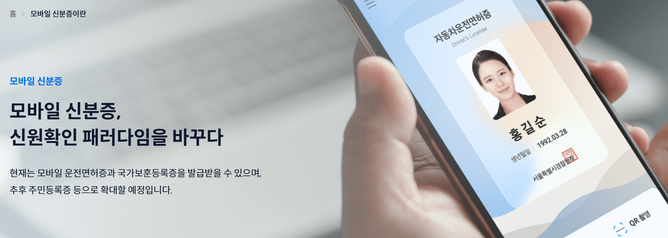모바일 신분증은 말 그대로 기존의 종이 신분증을 대체할 수 있는 디지털 신분증입니다.