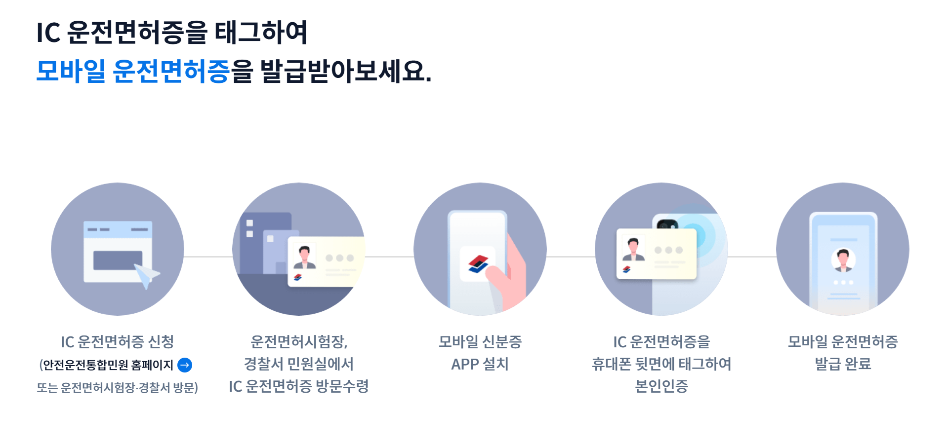 (5) 모바일 운전면허증 수령 : 위의 모든 과정이 완료되면 모바일 운전면허증을 수령합니다.