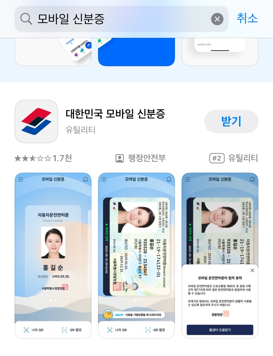 3. 위의 모든 과정이 완료되면 모바일 주민등록증이 발급됩니다.